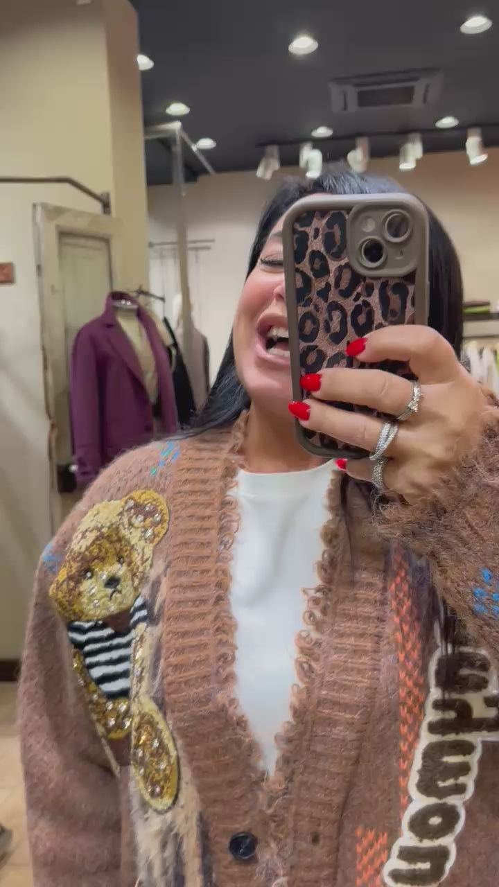 Maxi Cardigan jagarde di casa Kontatto con applicazioni e patch